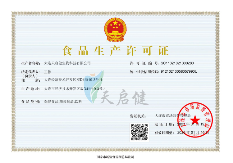 大連天啟健生物科技有限公司創建于2012年,是一家專業從事食品、保健食品的研發、生產和銷售的企業。